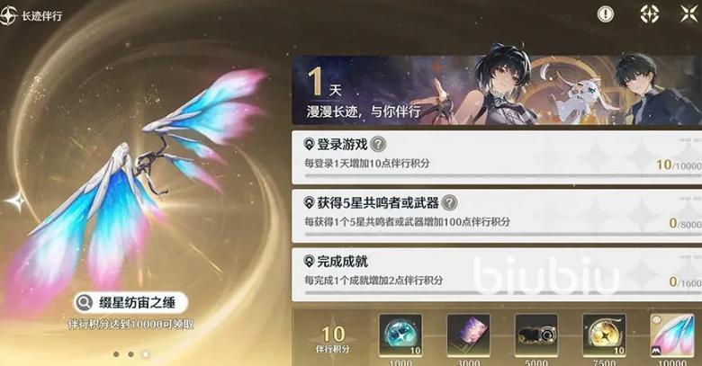 长迹伴行,完成伴行任务得到对应积分,积分达到一定阶段后就可以领取赠礼,包含10个常驻抽、新的印章、称号、10个限定抽、以及大家中意的免费典藏滑翔翼皮肤。获取5星角色的回音频段也会纳入积分,5星武器的获取也会纳入积分,这个长迹伴行回馈系统未来会解锁更多的礼品奖励内容,积分上限也会随之上升。