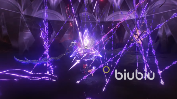 普通和技能又可以加审判值,达到满值后长按普攻可以释放千面魅影,并将目标身上的缚罪标记转化成持续18秒的惩罚标记,效果是当场上任意1个有惩罚标记的敌人受到伤害,会检索所有带有惩罚标记的单位,对其释放落雷攻击,即便敌人离得很远。落雷存在冷却时间,基础间隔1秒1次,3命后则变为0.75秒1次。