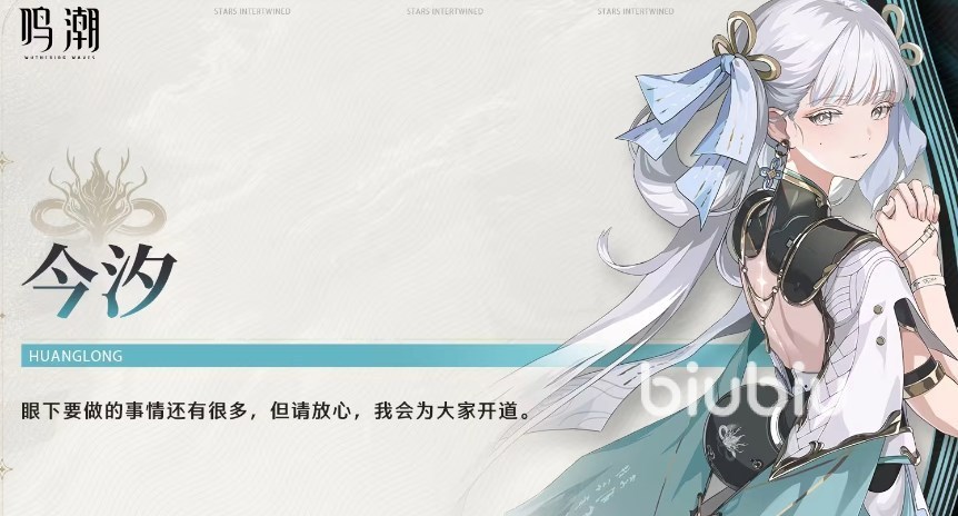 作为“今令尹”的她有着最高的职权,但同时也肩负着沉重的责任。但是无论前路如何的艰险,她也将竭尽全力,在风雪之中为开辟人类的未来。作为“岁主”的共鸣者,今汐也可以驾驭和“角”一样的力量,异能力似乎是与“冰或者雷”相关的,可以将春芒作雪,并流转万物,看上去似乎是一个增伤辅助。长离是今汐的老师,剧情里两人还有过通讯对话,但没有正式露过脸。如今这师徒二人同时登场,作为鸣潮1.1版本上下半卡池的限定角色。