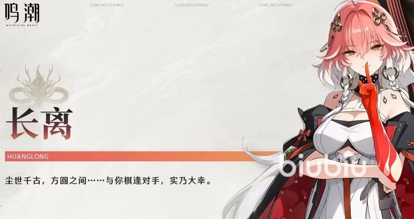 长离是一位参事,智将,擅长洞察人性并利用人性来引诱敌人入局,同时长离还是下面要介绍到的新角色“今汐”的老师。作为老师的她非常温柔且有耐心,擅于循循善诱。为了能达成自己的目标,亲身入局与时间、毁灭展开博弈。在官方的介绍中了解到长离能催生出有着极高温度和破坏范围特别广的火焰。火焰呈现雀翎状,让敌人无处可逃。