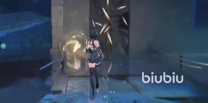 在获取简笔画之前需要先完成一些简单“拼装”活动,先从最下方泛着淡黄色光芒的设施那里获取“蚀岩蝶”,击碎另一侧的石堆从房屋中取出装置将放置在对应设施上。
