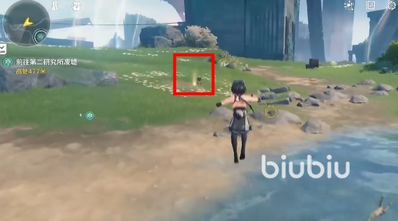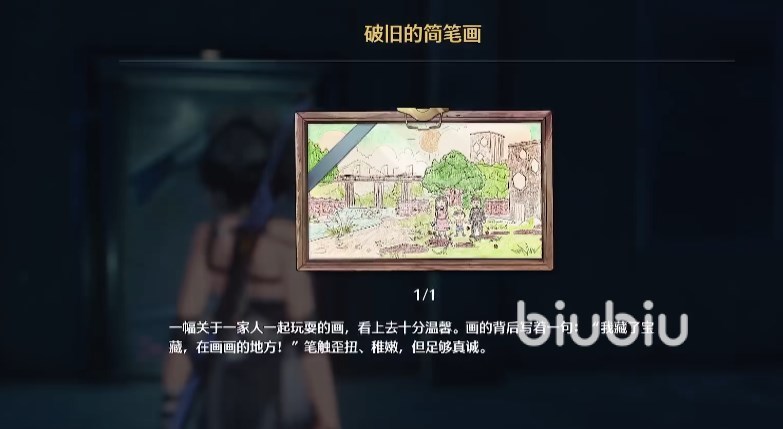 在背包的任务道具中使用该简笔画,可以知晓藏宝地点并不在研究所,而是在另一处。很多人觉得不像可能是因为画的是废墟前的世界,画的是那座桥,现在房子和桥都坍塌了。