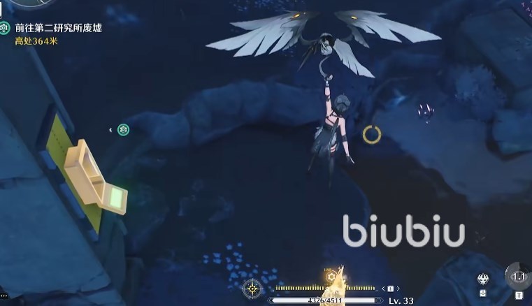 带着蚀岩蝶来到另一层封闭的房屋,让蚀岩蝶触碰到旁边的机关,房屋上的木板就会自动碎裂开来,如果没有碎裂可能就是卡bug了,稍微等一会儿就好了。从房屋中取得另一的装置,将其投掷到屋门左侧的门禁上,就可以进入研究站了。