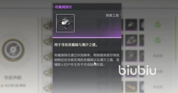 除了奇藏探测仪外,在2级3级的时候还会解锁借位信标、声匣探测器等功能,可以帮助大家更好的探索鸣潮的地图。但需要注意的是,探测仪也不是万能的,像是蝴蝶就不在探测的范围内,此外一些被石头盖住的宝箱也是探测不了的。