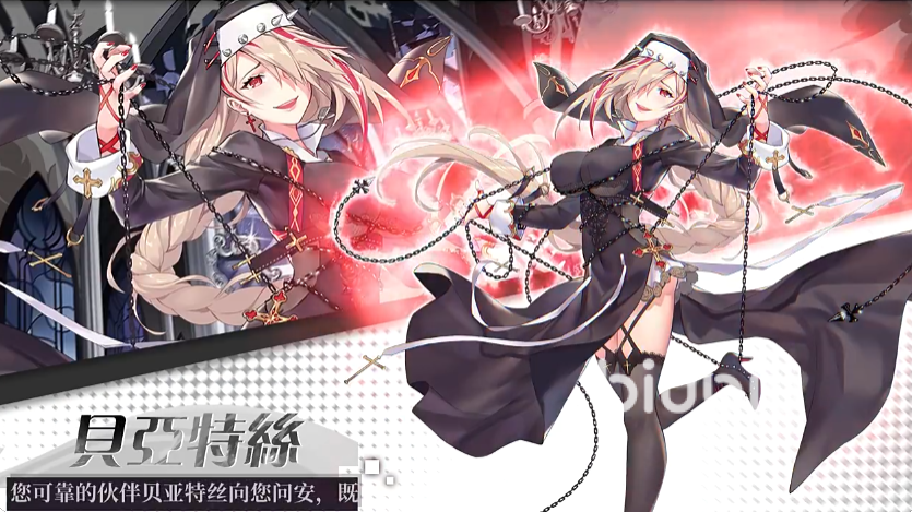 被动触发后,当贝亚特丝在场时,己方每次法师或攻袭职业角色使用大招时,可回复贝亚特丝300点怒气;并且给队伍有独特的技能,如果队长是聚魂棺或猎魇人,那么她登场时处于队长所在位置,会代替队长作战,继承队长100%的攻击,防御,生命,怒气,外加增益效果,同时获得大招神曲降临。