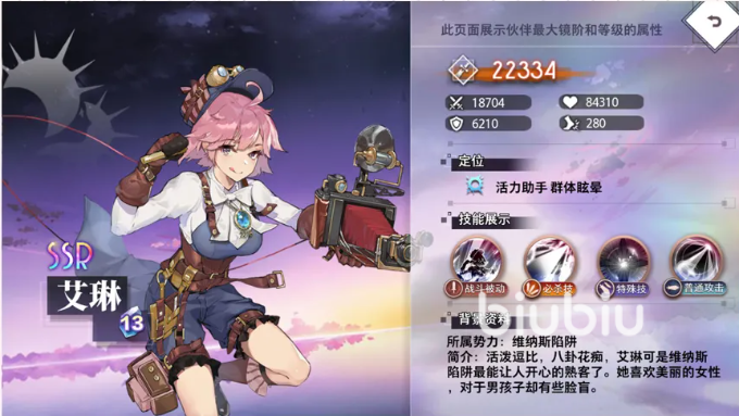 梦的第七章艾琳技能效果都全部介绍完毕了,通过以上讲解,大家也能看出,艾琳作为法师职业,输出能力尚可,主要对队友还有不同程度增益效果,通过控制能力也能创造更好输出空间,与队友配合,比较值得抽。