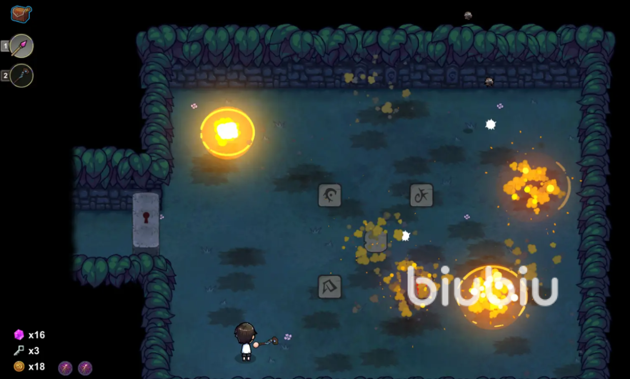 除了自定义法术外,游戏还提供了丰富的法杖与遗物供玩家选择搭配,这些搭配出来的法术不仅影响大家的战斗方式,还体现在不同的解谜和互动中,比方说玩家可以用火焰来点燃阻挡的木箱,或者用冰霜冻住水面来构建自己的探索路线等。