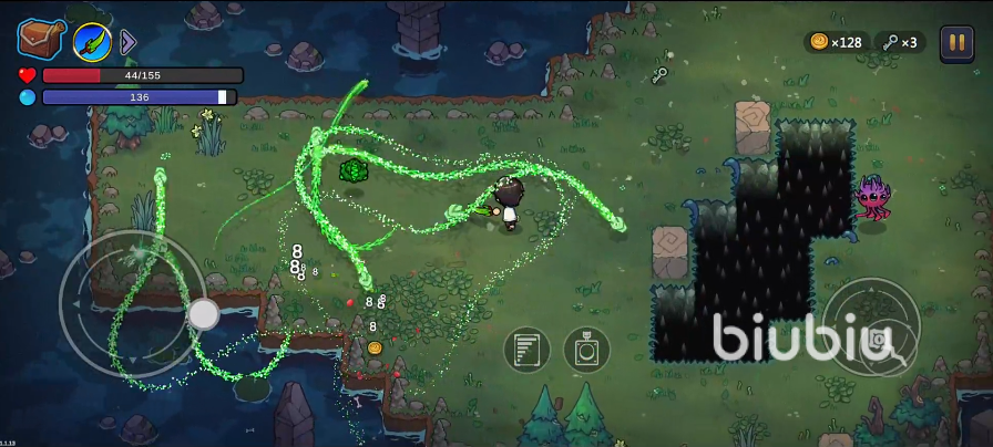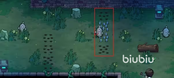 松树和草丛也能阻隔弹幕攻击,不过是会被摧毁的,松树比草丛能抗的次数会多一些,不过一般也只建议大家应急时使用。遇到一些陷阱的时候,可以先使用弹幕的击退效果,将小怪推到陷阱中击杀,陷阱有秒杀小怪的机制。