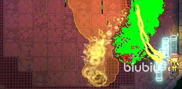 呲水枪的特点是高频率、多段打击的法术输出。如果选择围绕这个来构建打法,可以尝试用“毒”。带上“免疫毒液”和“尖刺”遗物,否则场面极易布满毒液,使得自己陷入困境。