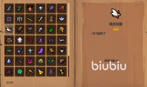 精灵羽翼是能让我们直接飞起来,有了它相当我们拥有无限续杯的悬浮药水,非常炫酷,但是需要50的血量上限。
