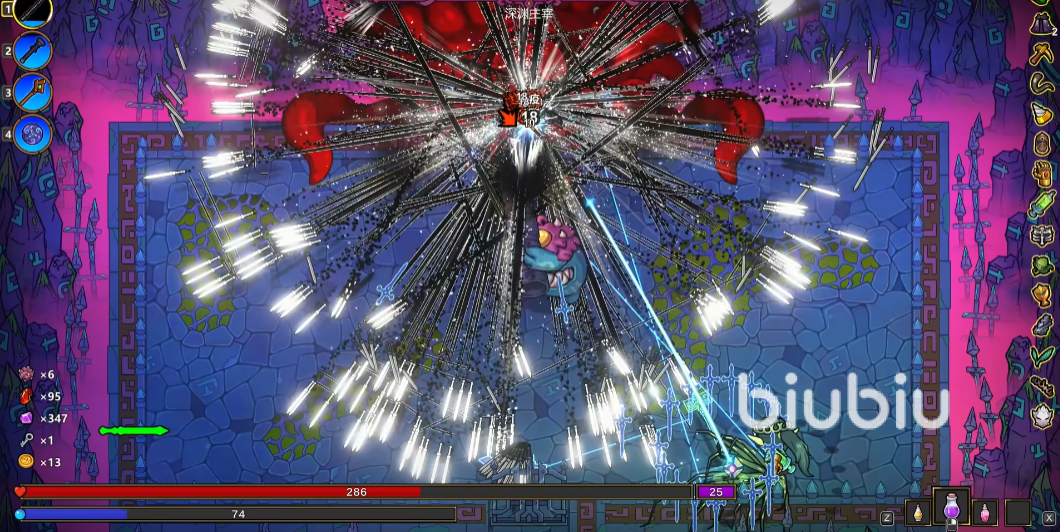 尖刺铁箱是一种更加有辨识度的铁箱子,外边会有锋利的尖刺,看起来就有危险的气息;靠近并开启会直接扣除血量的,在开这种箱子之前,一定要提前准备好护盾,生命值高于50,是能比较放心的打开的;还有一种诅咒宝箱,周围会有武器存在,开启会带来负面效果。