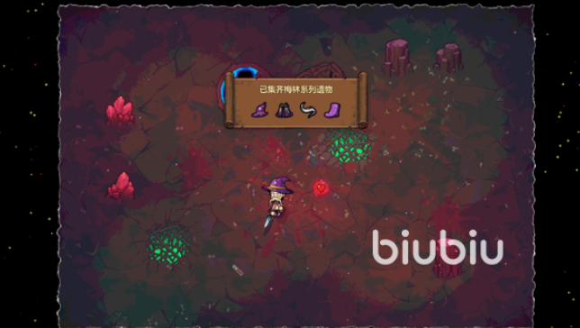 骑士套有骑士之靴、骑士胸甲和骑士头盔,胸甲能减少25%受到的伤害,骑士之靴能免疫地面尖刺,以及毒液、粘液效果,头盔能让受到的无差别伤害降低,这三件在一起,能触发每次进入房间无敌8秒的套装效果。