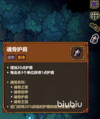 魂骨套包含了魂骨护肩、魂骨之匣、魂骨铠甲和魂骨王冠,护肩能增加护盾,并且每击杀一定单位就能获得几点护盾值,魂骨之匣能在有敌人死亡的时候,概率产生一个会追踪敌人并形成伤害的灵魂,铠甲能在敌人死亡的时候,概率产生一个围绕在自身的护盾,王冠能在击杀敌人后获得几点的临时护盾,当四套集齐之际能触发进门的时候,将20%临时护盾转化为普通护盾的套装效果。