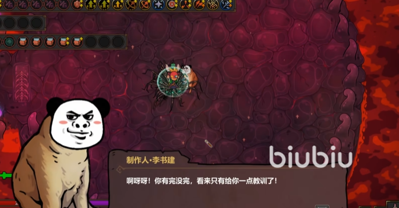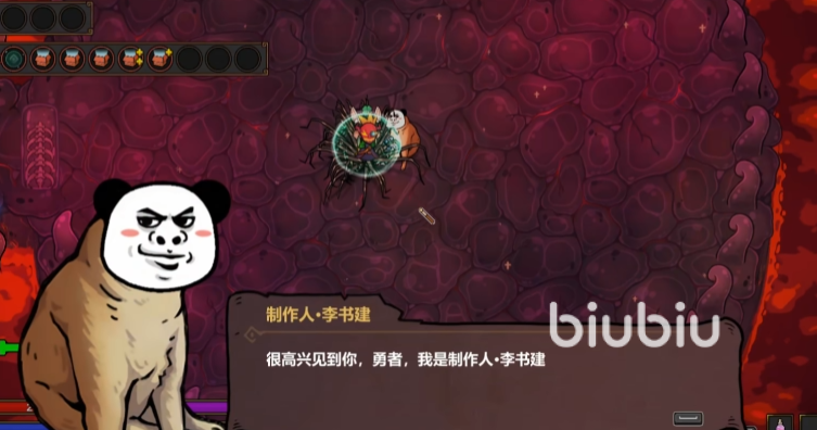 进入后就能看到隐藏的“狗头人彩蛋”,要注意的是这个制作人彩蛋boss也不是上来就开打的,可以先去与他对话。然后会弹出一些选项,像是“什么时候更新多人模式”、“什么时候出魔法工艺2”、“你怎么长得像条狗”,有这3个问题,如果选第三个就是直接开打。