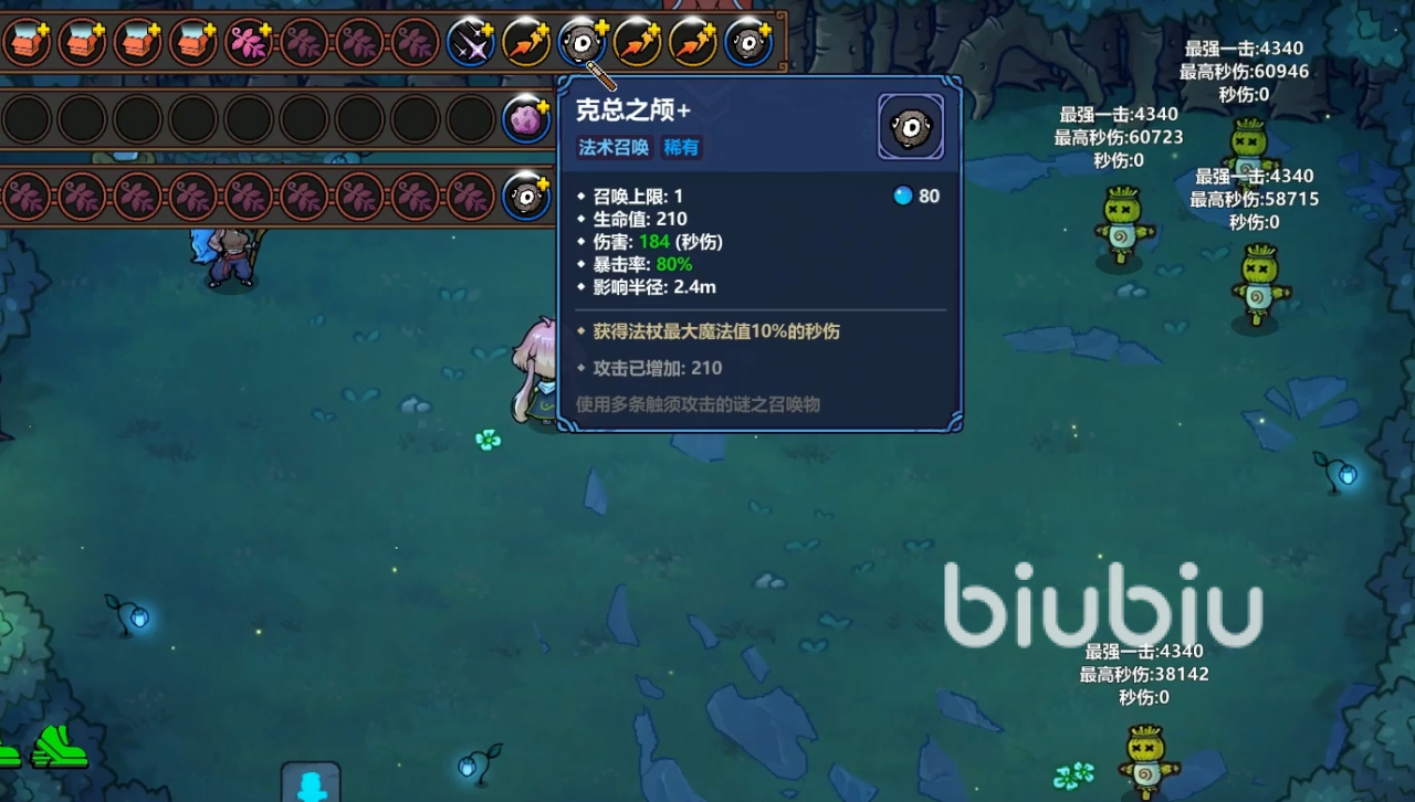 然后我们要做的就是提升它的召唤上限,目前提升的最简单方式就是依靠“魔导书”,它能召唤我们所需要的召唤物,1层魔导书的嵌套,就能召唤出3个克总之颅,威力再进一步提升上限与频率,建议再加上1层变成2层嵌套相对而言就比较够了。