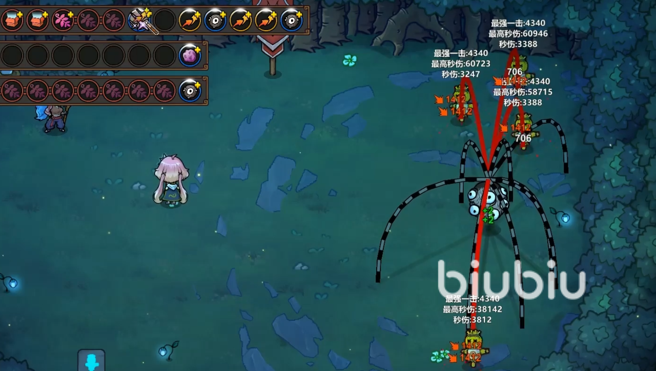 首先克总之颅是长出4条触须来对最多4个敌人造成持续伤,在法术增强“精魄”的效果下还能再额外长出4个触须,造成高攻速的穿刺伤,大家可以再给它搭上“融合召唤”,形成双头“克总之颅”拥有8个持续攻击的触须,以及8个穿刺攻击的触须,让攻击频率拉满。