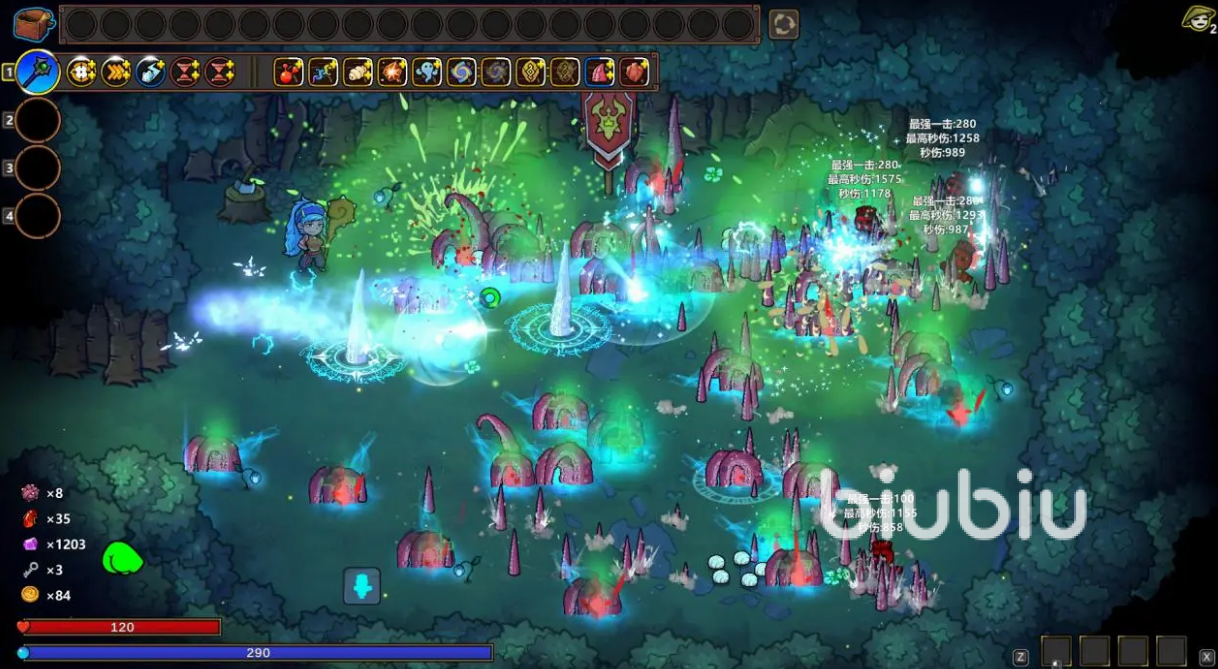 在法杖的选择方面,比如末日之兆就非常的不错,其作为主武器能为大家提供强有力的生存保障,不过要优先强化其冷却缩减属性,至于无形之杖也是不错的,可单独放置于多格子法杖栏位,让自身去专注堆叠触发频率而非伤害数值。