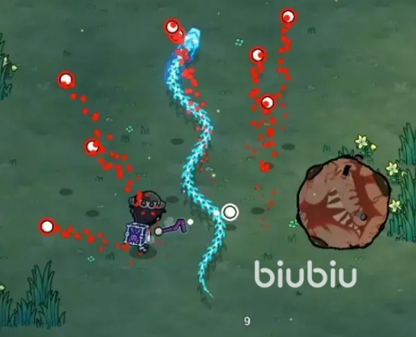 暴躁之眼是第一章首领中最为难的boss,它主要难点就是攻击伤害高,且新手第一次遇见不太好躲避,他拥有2种不同的攻击方式,第1种攻击方式为压平自己的身体,冲着某一个方向跳跃,并在空中进行弹幕攻击。