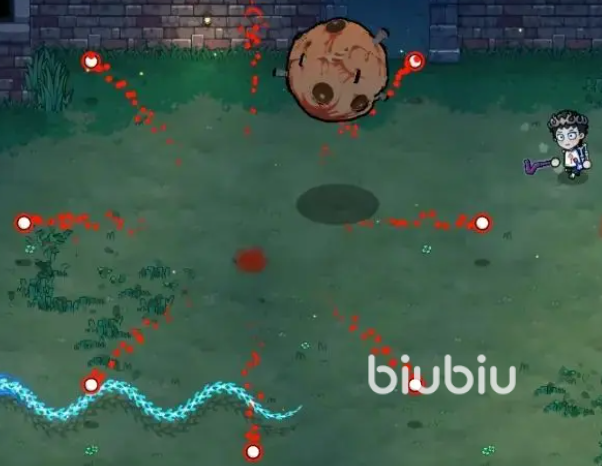 此招应对也很简单,因为弹幕的发射通常会比较远,大家反其道而行之走进boss,就能规避伤害并进行攻击,他的第2种攻击方式是先伸长自己的身子,然后进行压缩,随后发射出红色的滚石,滚石会伴随着追踪效果。