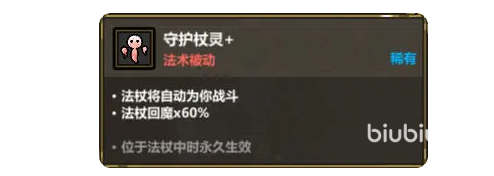 这个魔法套组是需要用到两个魔杖,第一根魔杖叫做瓦解射线,之所以选择它,是因为它的射速很快,伤害也比较高,能够快速触发核心法术强力牵引。第二根法杖是守护仗灵,让另一个法杖一起辅助战斗使用。