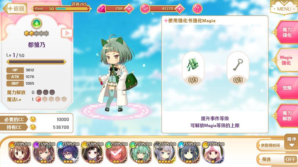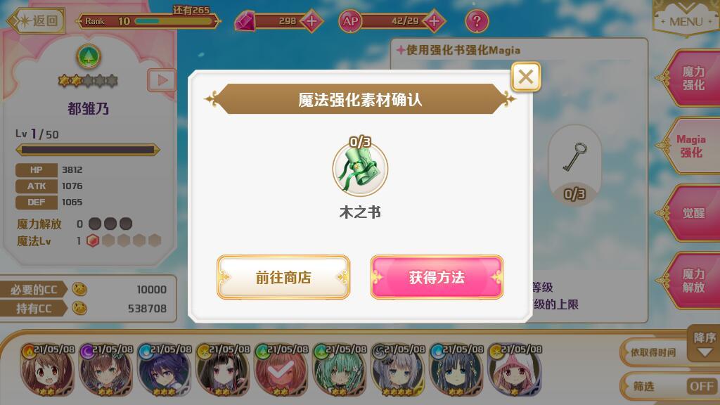 宝石可以快速的为魔法少女提供大量经验值,魔法少女的等级也会随之快速提高。第二个步骤主要是强化魔法少女的技能,点击Magia强化直接可以进入到相关页面,随后玩家们准备好光之书即可。