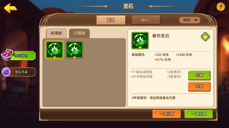 3、每个英雄可佩戴多个圣石,圣石佩戴数量随着英雄品阶的提升而增加。每个圣石都有基础属性和随机属性。