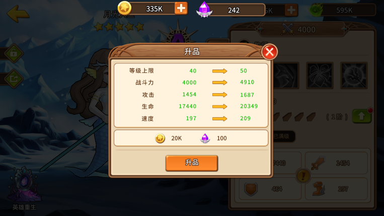 2、玩家可以通过融合水晶来对角色进行升星操作,角色星星数量越多那么所需要的升星材料也会越多。