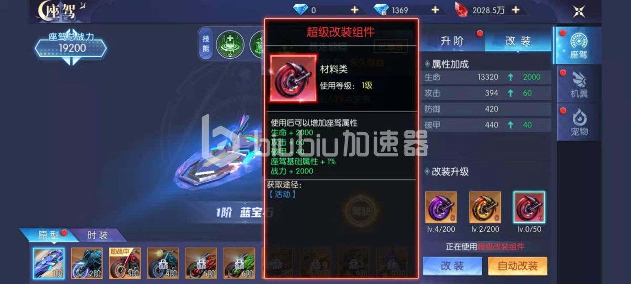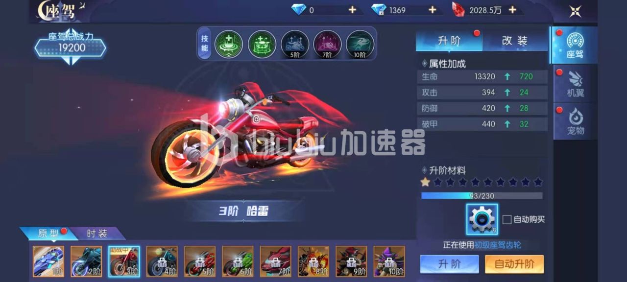 想要获得高阶坐骑,升阶和改装是必不可少的,坐骑的升级需要的是座驾齿轮,按照等级分为初级,中级和高级齿轮,座驾齿轮可有通过绑钻商店来购买。绑钻商店中出售的初级座驾齿轮是十枚绑钻一个,想要快速升级的玩家可以尝试一下。座驾改装需要的是改装组件,组件有分为破甲改装组件,攻击改装组件和超级改装组件等。
