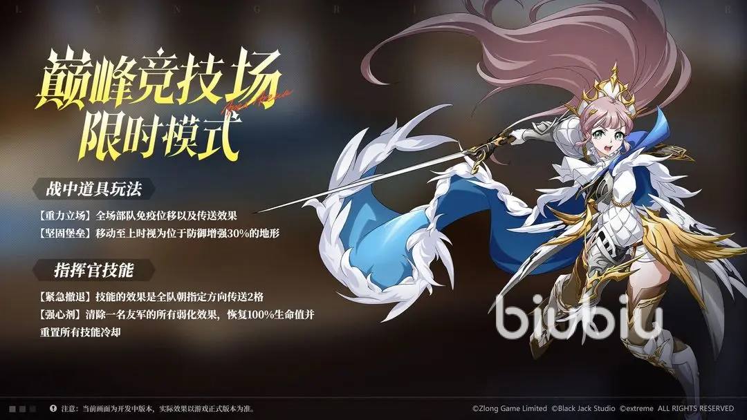 周年登场新秘境,本次秘境的主题为“造梦庆典大作战”,都可积极前往挑战。去年推出的巅峰竞技的限时模式受到欢迎,周年会更新两个新脑洞,也就是战中道具玩法,以及指挥官技能。
