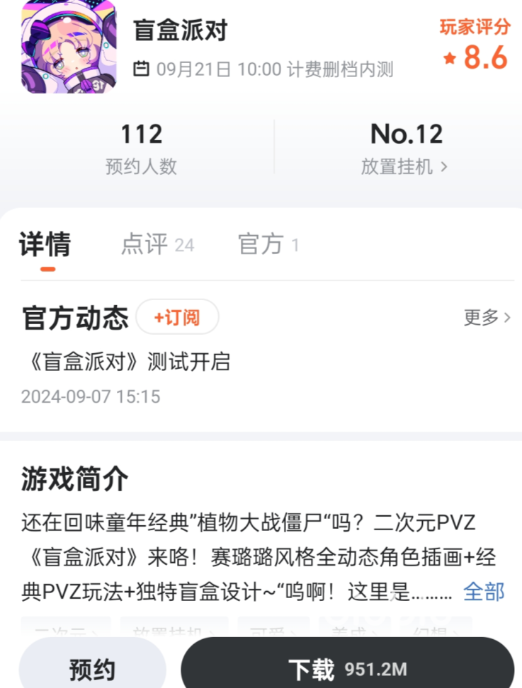2024年09月24日 20:08 来源:灵动信胡地盲盒派对是一款非常有趣的策略塔防游戏,堪称二次元版的PVZ,游戏在最近开启了不限号计费删档测试,不少小伙伴想知道盲盒派对测试服怎么进?怎么才能参与这次测试,下面就给大家说明一番,告诉大家怎么参与游戏内测,同时也会简单聊聊这款游戏的玩法特色。