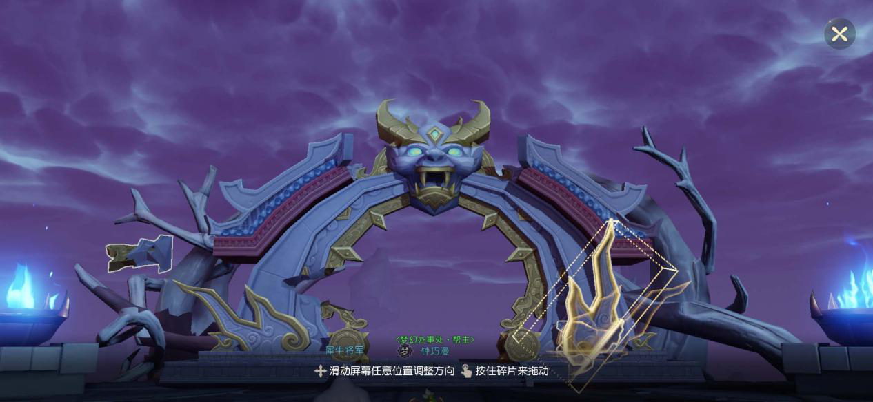 第六步,击败龙王后需要进行一个拼图任务,每个零件都可以进行360°旋转,当位置和角度都合适的是时候拖进对应的缺口处就可以了。拼好之后去找崔判官,至此40级主线任务就算是结束了,玩家在活动中可以获得大量经验奖励。
