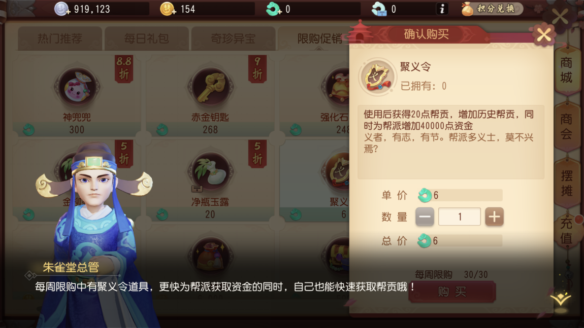聚义令通过购买获得需要6灵玉,使用后获得20帮贡,增加历史帮贡,同时为帮派增加40000点资金。金银锦盒可以通过活动获得也可以通过摆摊购买。