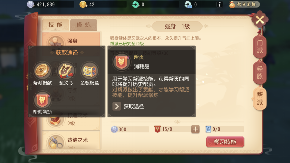帮贡可以通过帮贡捐献、聚义令、金银锦盒以及帮派活动获得。