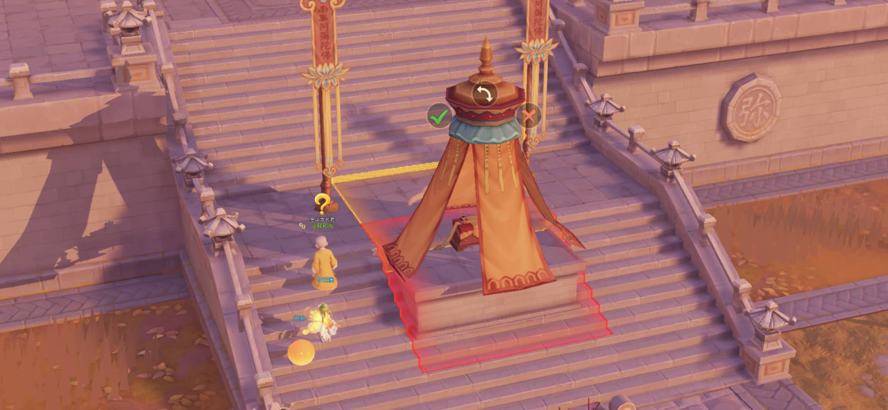 第五步,帮助业释和尚把宝账支起来,移动宝账到绿色方块内,点击对号就可以了。此时继续选择关键词,这一次选择品评道理和被人听见这两个词。