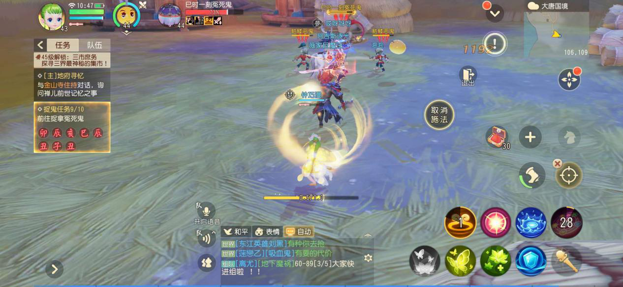 最后需要注意的是要想快速完成抓鬼任务,需要在队伍组成上尽量优化,第一就要组满5个人,第二就是职业要互补,肉盾、输出、治疗都要有,其中肉盾推荐组一个狮驼岭,治疗建议组一个普陀山,这样打起来就很快了。