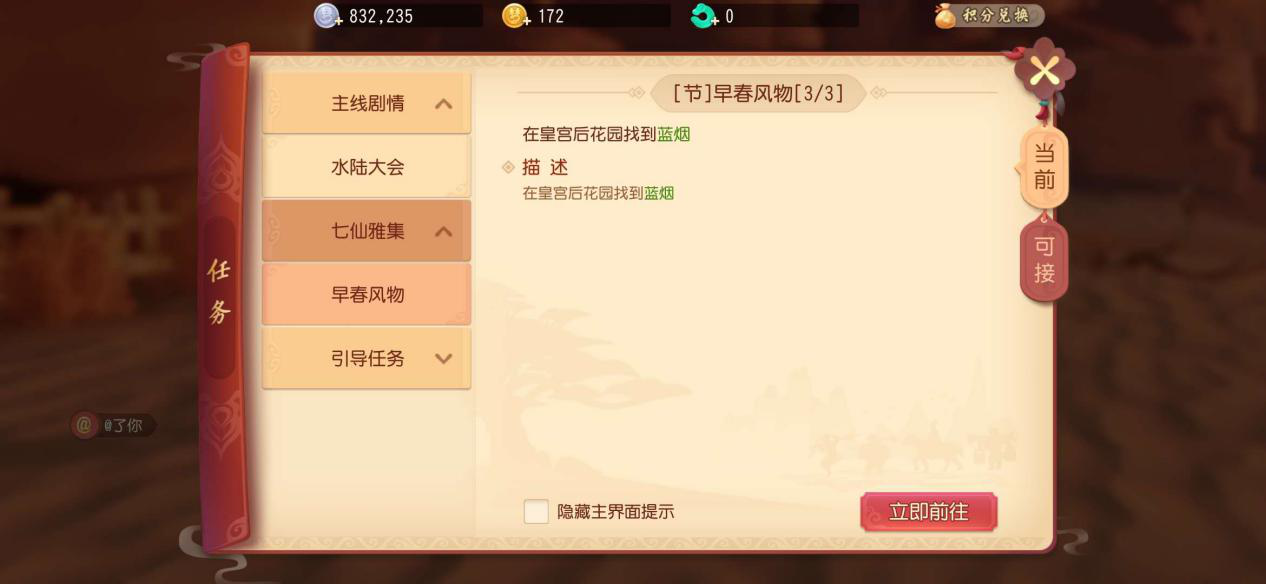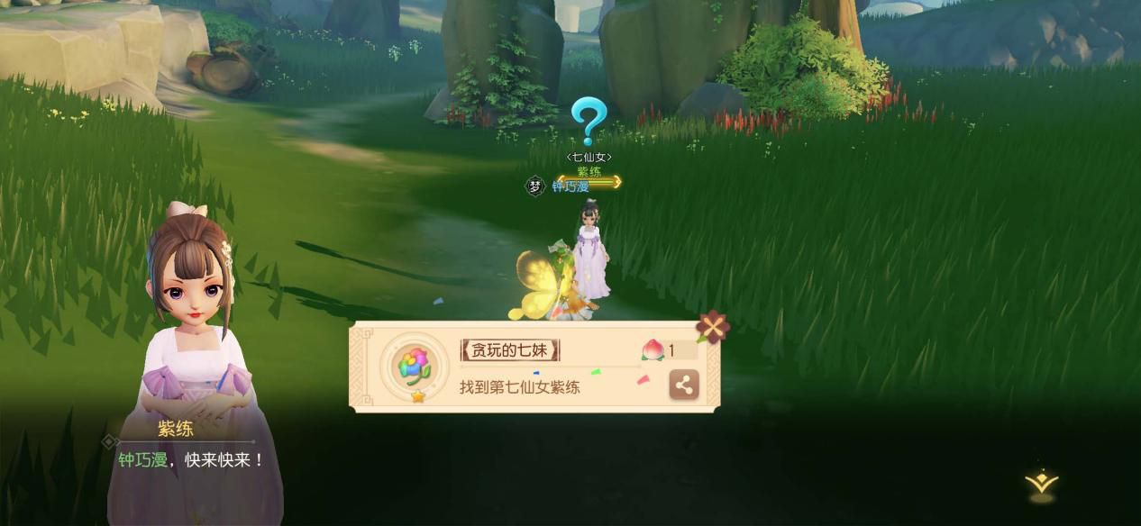 春风早物是一个环式任务,玩家前往仙草林的七仙女处接取任务,每个玩家每天可以接取一次任务,每轮又分为三环,任务非常简单,都是找人,寻物等任务,只需要跟着自动寻路就可以轻松完成。