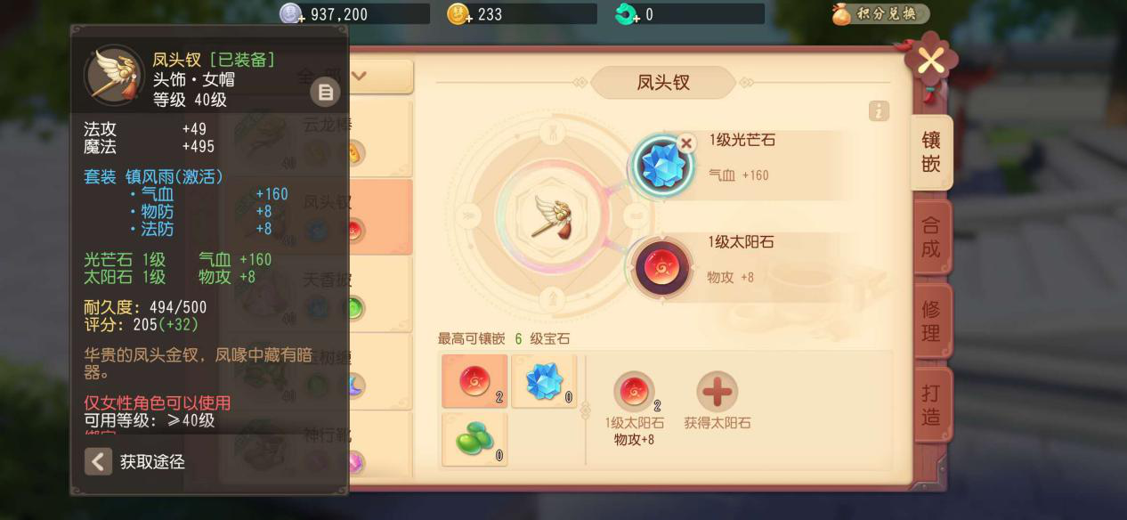 第三个方面是宝石镶嵌,每件装备都可以镶嵌两枚宝石,根据装备部位不同,可以镶嵌的宝石种类也不同。增加宝石评分一是必须为每件装备都镶嵌上宝石,二是尽量提高宝石等级,两枚低等级的宝石可以合成为一枚高等级的宝石,高等级宝石无论是属性还是评分都要远高于低等级宝石。