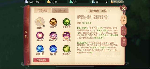 讲完经脉再聊技能,莲心剑意是输出普陀名副其实的最关键技能,积累到100点莲华后可使用,特效延续时长为12秒。运用此技能后,可以加强日光华、靛沧海这2个相对关键的输出技能不用说,该技能同样会变成剑影莲华。运用剑影莲华后,会带来半径10米的巨额伤害不用说,还是会为自身的莲心剑意特效延伸2.5秒的时间。