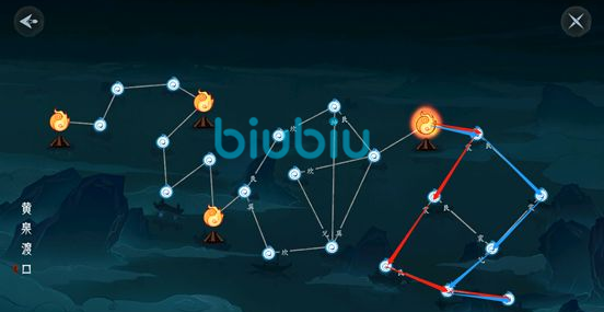 其余两个迷宫分别是黄泉渡口1和黄泉渡口2,这两个渡口也各自有两条通关路线。