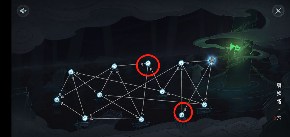 1、水天柱这个地图不要随意的去打,小编会在图中标注出位置。红色标注是剑圣的所在位置,蓝色的标注是剑魄的所在位置,需要特别注意的是一旦水天柱被打碎,那么玩家是无法再次进入这里的,必须重新从第一章打一遍才行。