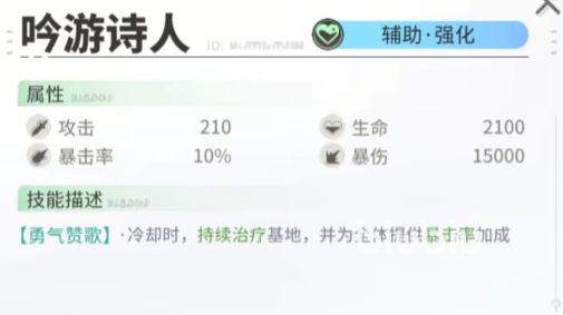 在中后期开始,小护士就会有些不够用了,毕竟这位的上限并不是很高,咱们是不可能投入太多的资源来去培养她的。这个阶段比较推荐吟游诗人这个角色。这个角色本身是属于强化辅助类型的奶妈。整体的属性从目前来看还是很不错的。