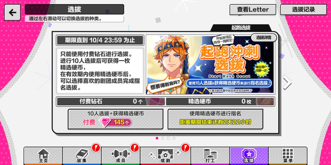 普通Letter可以通过常驻钻石卡池的十连抽取获得,一次十连奖励5个普通letter。旬letter则是需要在限定卡池中抽十连,同样可以获得5个旬letter。