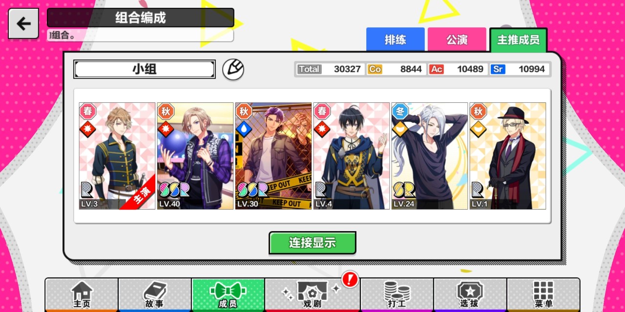 看到这个头像可以发现:他就是我们选定的看板角色,即主推成员组合中的主演位,换掉主演,就可以将头像换为选定的角色。更换头像有两种方法。其一:在抽到新的中意卡牌后,首先要将他编入主推组合,那么首先点击成员界面,然后进入组合编程,在主推成员(绿色标签)中进行更换,单击主演位置进行角色的更换后不仅头像会发生变化,同时看板也会改为新角色。