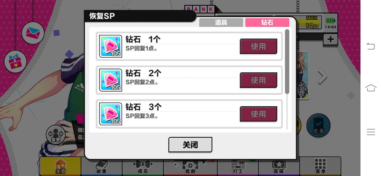 还有一个需要注意的地方,sp值使用完之后,有三种方法来恢复sp值,一种就是等,但是消耗的时间非常多,另一种就是使用钻石来恢复,但是也非常贵。