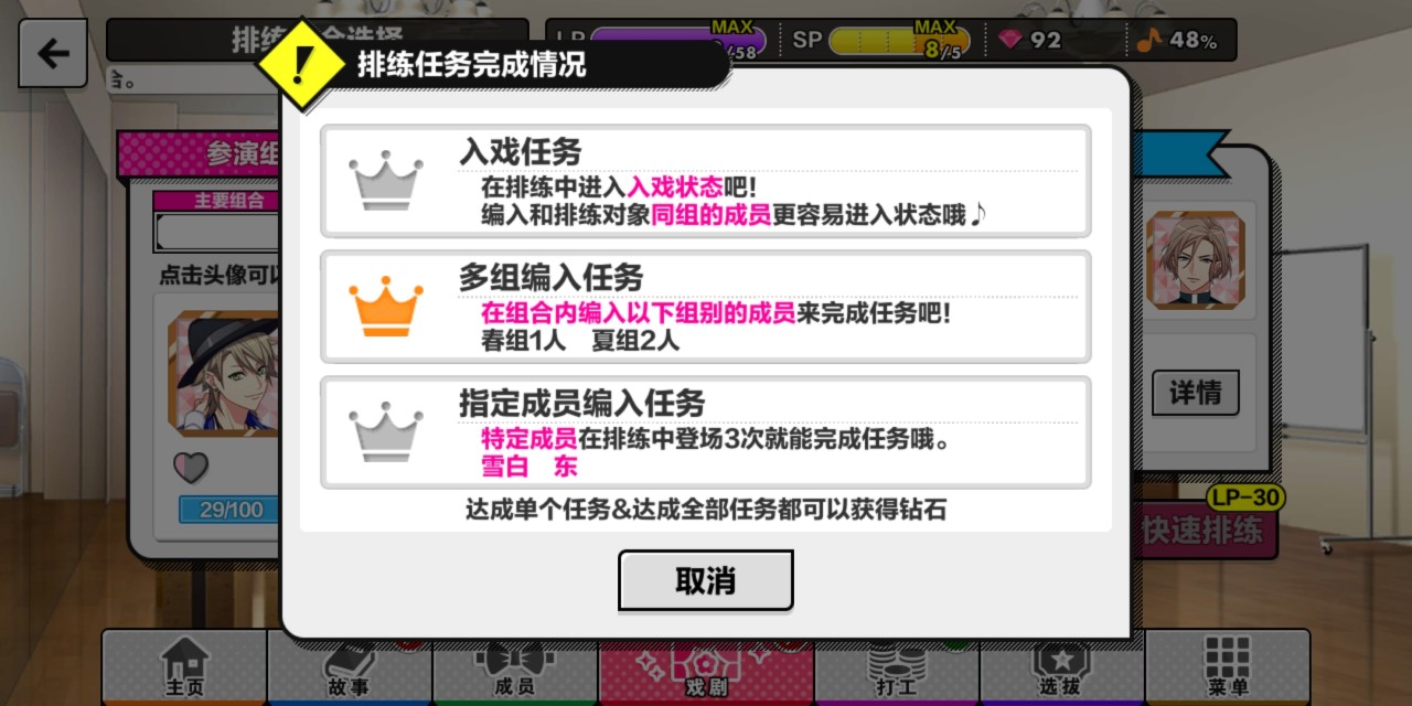 A3满开剧团怎么看春夏秋冬,各组成员查看方法