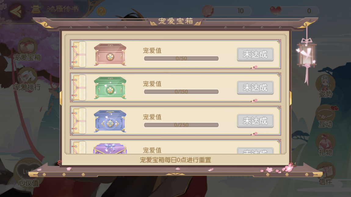 当心仪值达到六级时可以开启姿势,每天读取信件可以增加心仪值和宠爱度,但每天最多只能读六封信。赠送礼物和互动都可以提升心仪值和宠爱值。