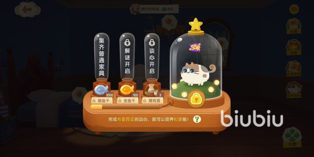 游戏中,章节任务给我们讲述很多npc的故事,当我们完成章节任务,就能获得一只ssr级的猫咪。