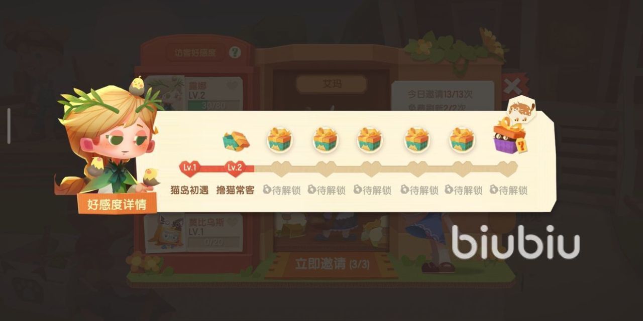 玩家可以去好友的院子里玩耍,于玩家的猫咪互动和送礼,可以解锁好感度,当好感度到达8级后,就可以获得一个猫咪奖励。