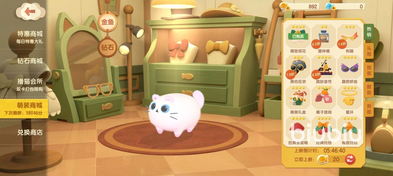 游戏里有个萌装商场,玩家可以在商场中花费金鱼干去购买服装。商场每隔6个小时会刷新一次,玩家也可以花费20个金鱼干立即刷新。商店的时装都是比较贵的,一个四星级的时装要150个金鱼干,但是商店里会有些打折的服装可以购买,玩家可以看一下,是比较划算的。