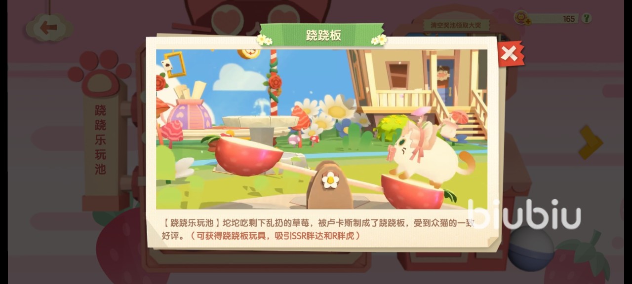 猫猫春日大作战活动中,当我们完成所有任务后,将“跷跷乐玩池”中的奖品领完后,就可以获得跷跷板玩具图纸。这个玩具图纸是限时活动,大家一定要活动期间内完成哦。